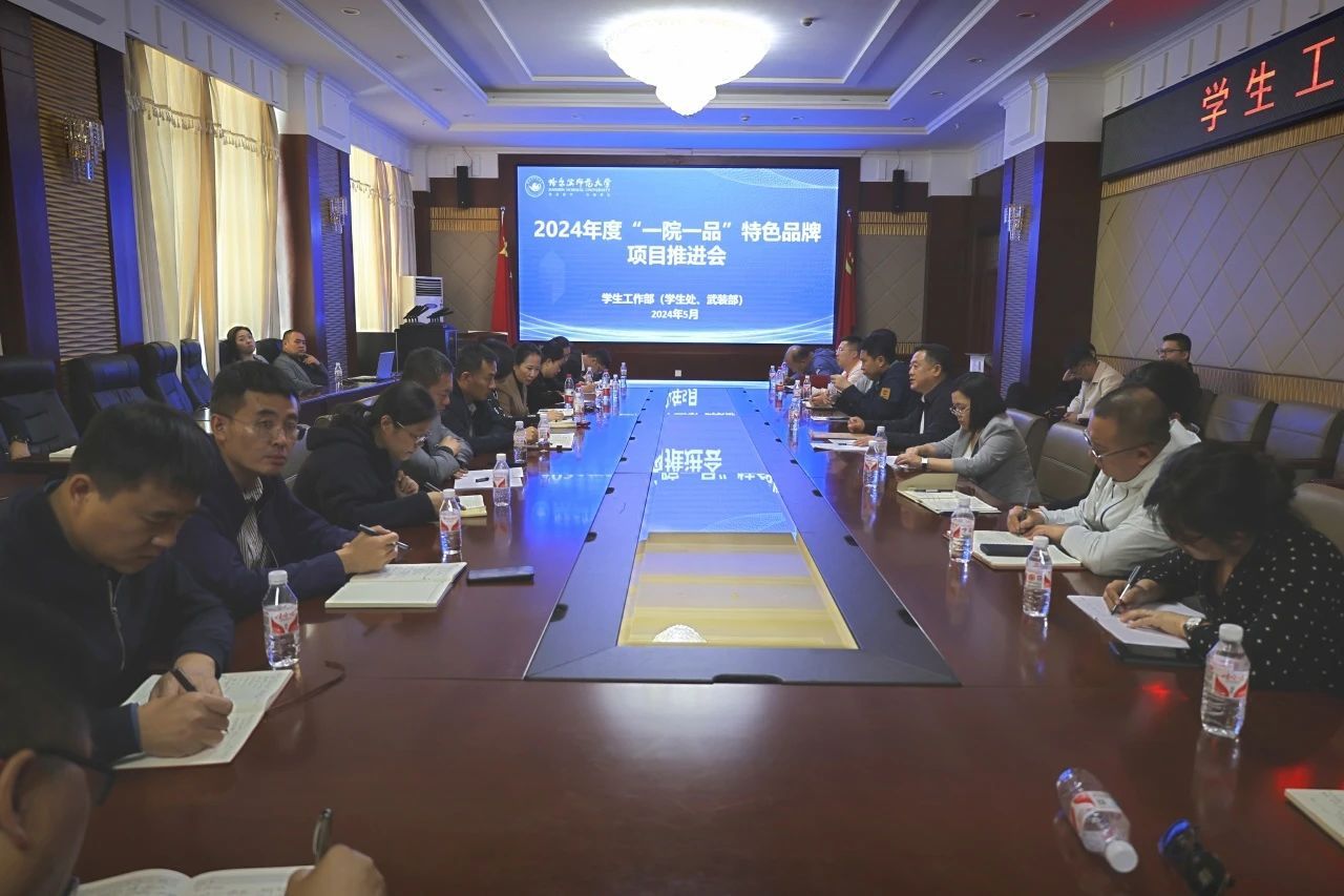 (屈怀东/文)为深入贯彻教育部关于“时代新人铸魂工程”的总体要求,落实我校大学生思想政治教育“112349”工作模式,深化“三全育人”综合改革试点工作,加强毕业生安全管理、倡导文明离校,加快推进学工领域特色品牌建设,5月23日,学生工作部(学生处、武装部)在行知楼0107室召开毕业季专项学生工作例会暨“一院一品”特色品牌项目推进会。学生工作部(学生处、武装部)部(处)长王彦庆及相关负责同志、各学院党委副书记共同参加会议。