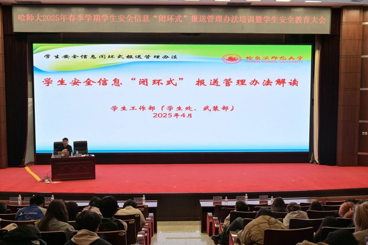 为进一步增强学生安全意识、责任意识和防范能力,加强我校学生安全工作,完善校园安全防范体系,提升广大师生安全意识和抵御风险能力,4月16日下午,2025年春季学期“闭环”培训暨学生安全教育大会在科学会堂二楼召开。