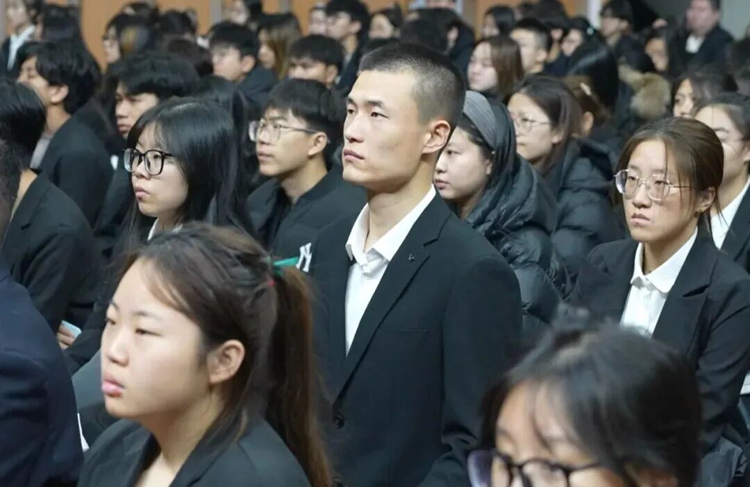 退役大学生士兵代表、数学科学学院2022级陈学希同学,结合自身南沙守礁的从军经历分享热血感悟,真挚的话语、坚定的信念引发全场强烈共鸣,生动展现了哈师大学子以青春赴使命、以赤诚护家国的昂扬风貌与初心坚守。