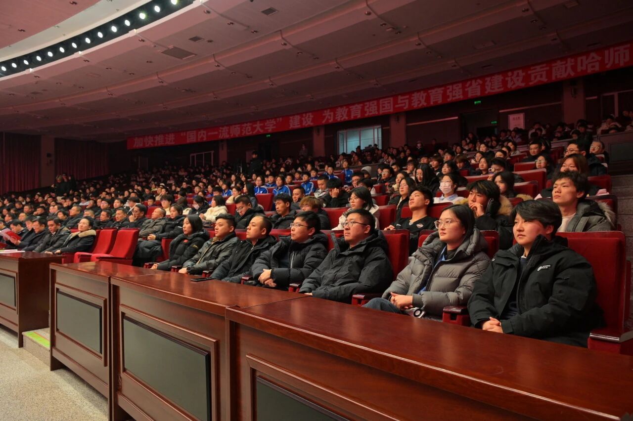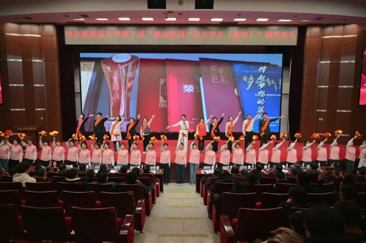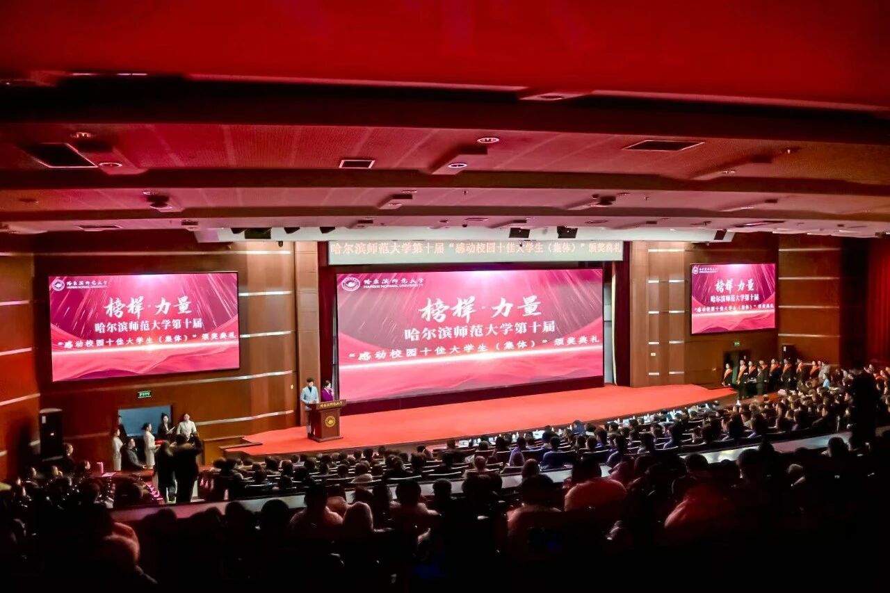 (耿长志/文)为全面贯彻落实全国、全省教育大会精神,扎实推进新时代立德树人工程,深入推进大中小学思想政治教育一体化建设,以榜样的力量引领青年成长,拓展我校“大思政”育人格局,12月18日下午,我校在科学会堂举办哈尔滨师范大学第十届“感动校园十佳大学生(集体)”颁奖典礼。校党委书记孙立军、校长蒋鲲等学校党政领导班子全体成员出席活动。学生工作部(学生处、武装部)、团委、教务处、学生就业指导处、研究生学院负责同志,相关学院党委书记,各学院党委副书记、全体辅导员及学生代表、哈尔滨新区第二学校师生代表共600余人参加颁奖典礼。