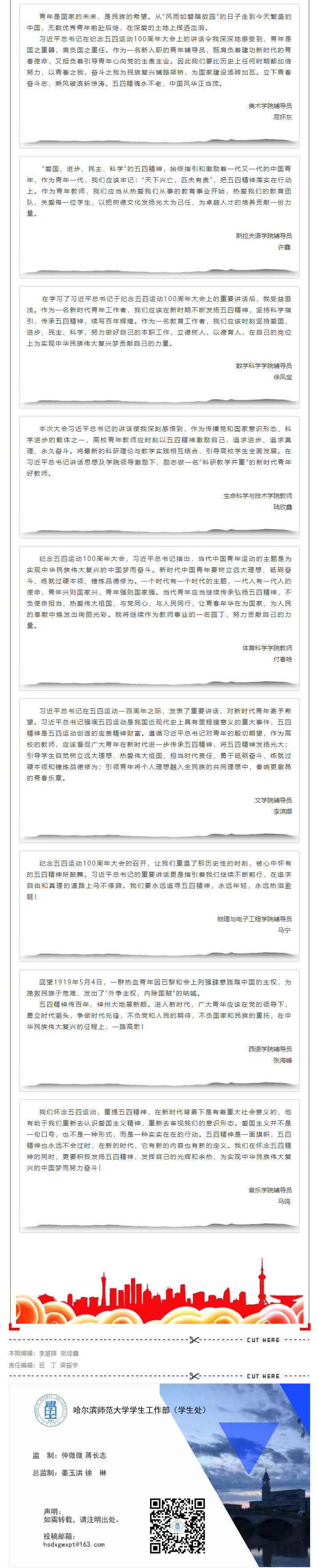 习近平总书记在纪念五四运动100周年大会上的讲话引起哈师大师生热烈反响(一)