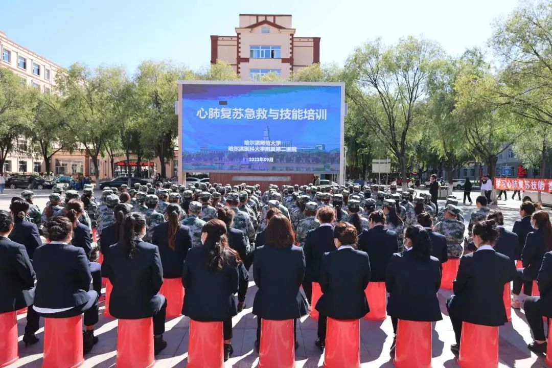 (耿长志、曹傲然/文)为深化主题教育成效,推动能力作风建设“工作落实年”活动走深走实,普及急救知识和技能,提升师生健康素养,9月20日,我校邀请哈尔滨医科大学附属第二医院心肺复苏进高校项目组60余名医护人员为我校7500余名新生和全体学生公寓管理人员开展了心肺复苏知识与技能培训教育。党委书记孙立军,哈尔滨医科大学附属第二医院党委书记王永晨出席培训活动。