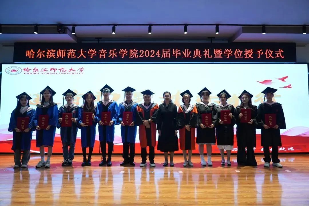 6月21日下午,音乐学院“追音而遇 沐乐前行”2024届毕业典礼暨学位授予仪式在双创园二楼隆重举行。学院领导班子成员、学院学位评定分委员会成员、教师代表、全体辅导员以及2024届本硕毕业生代表、部分学生家长代表参加本次毕业典礼。毕业典礼暨学位授予仪式由学院党委副书记周芳主持。