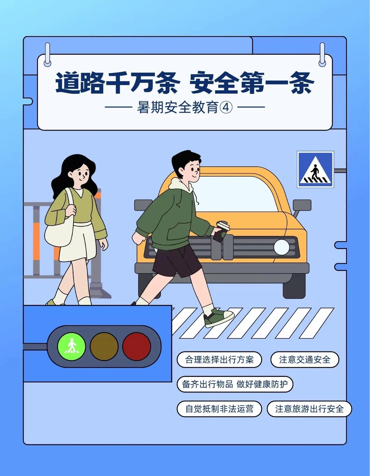 随着立秋时节的到来,暑假假期已悄悄步入中段。无论是外出游玩,还是走亲访友,请同学们都要把安全牢记心间。为确保每位同学能够拥有一个安心且愉快的假期,这份暑期出行安全提示请各位同学注意查收: