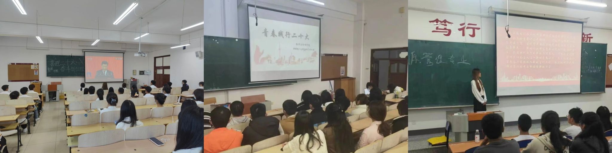 自党的二十大召开以来,经济与管理学院2022级人力资源管理专业四班团支部的25名同学始终以坚定的信念为指引,将思想建设作为班级发展的基石,现有中共党员2名,中共预备党员1名,入党积极分子17名,他们宛如熠熠星火,引领着思想奋进的征途;这一路,他们精心策划开展超 30项思想教育活动,“知识早餐”的晨曦微读、“知识晚餐”的暮时精学,红色诗歌朗诵大赛更是激情澎湃,同学们以赤诚之声,吟诵先辈壮志,回溯红色征程。