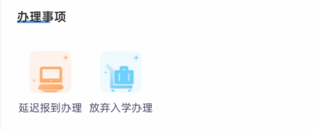 如有延迟报到或放弃入学的同学,请及时联系辅导员老师,并在办理事项中进行办理。