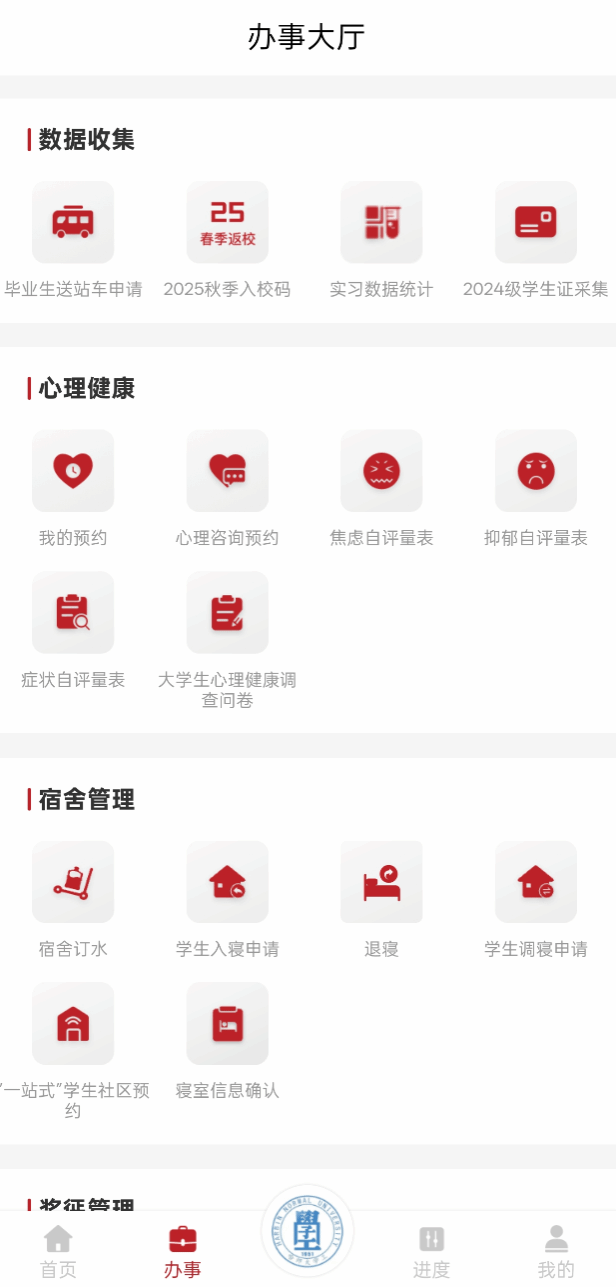 哈尔滨师范大学“智慧学工服务”App整合学生管理、心理健康、数据收集、宿舍管理、奖惩管理、资助管理、网上报修、武装工作等模块,学生可以线上办理请销假、勤工助学、参军入伍、奖学金评定、申请校外住宿等手续,还可以线上预约心理健康老师进行心理咨询,同时可以根据自己常用功能制定个人专属页面。系统后续还会增加各种服务功能,旨在便利学生日常学习生活,简化手续流程,为广大师生提供更加高效便捷的校园服务。