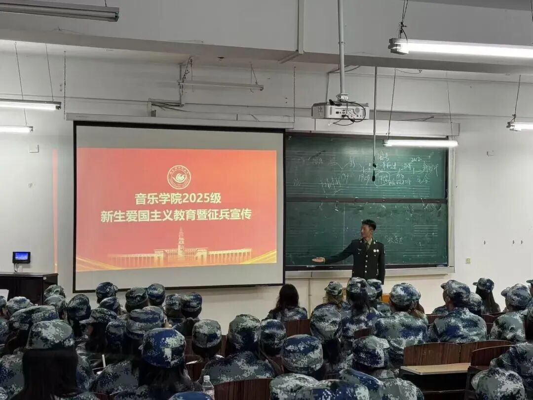 入学教育“十个一”丨音乐学院开展2025级新生爱国主义教育暨征兵宣传活动