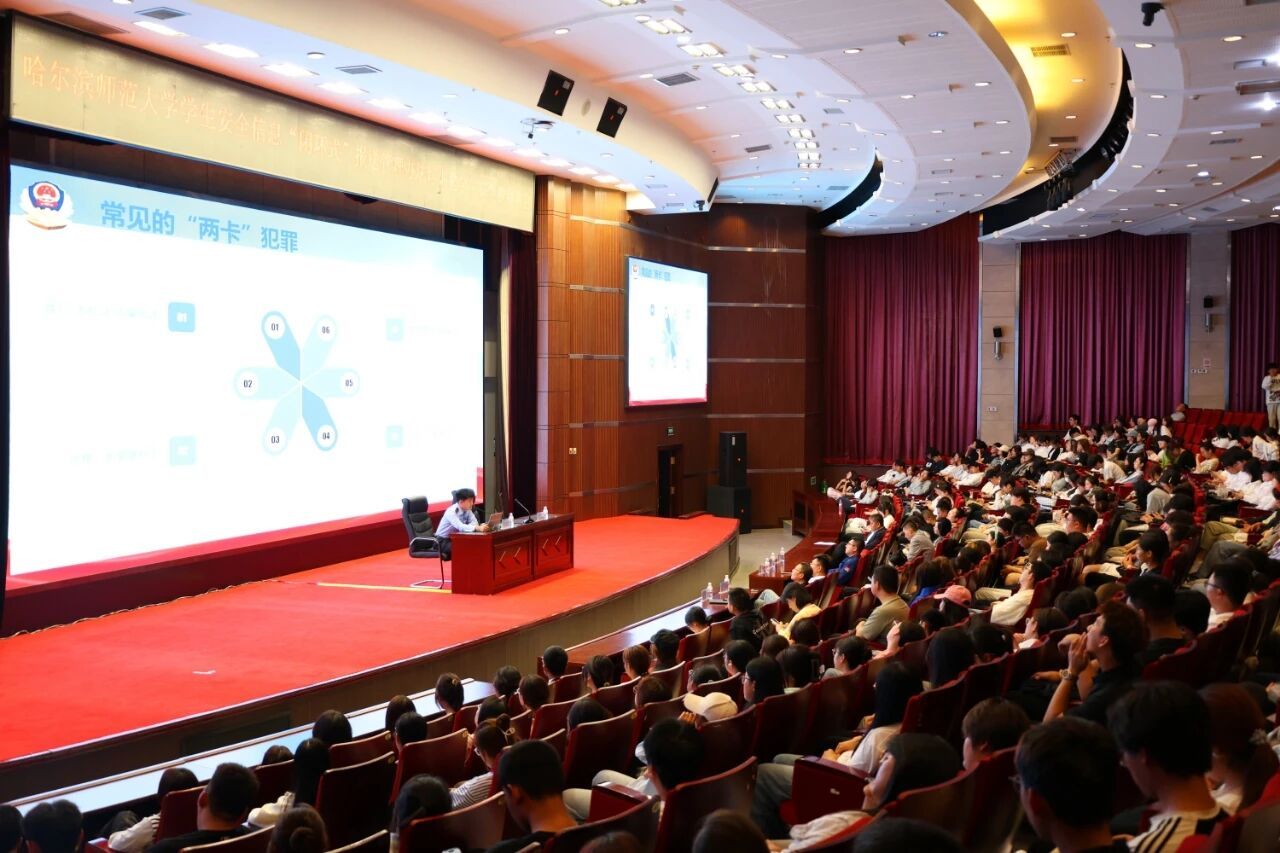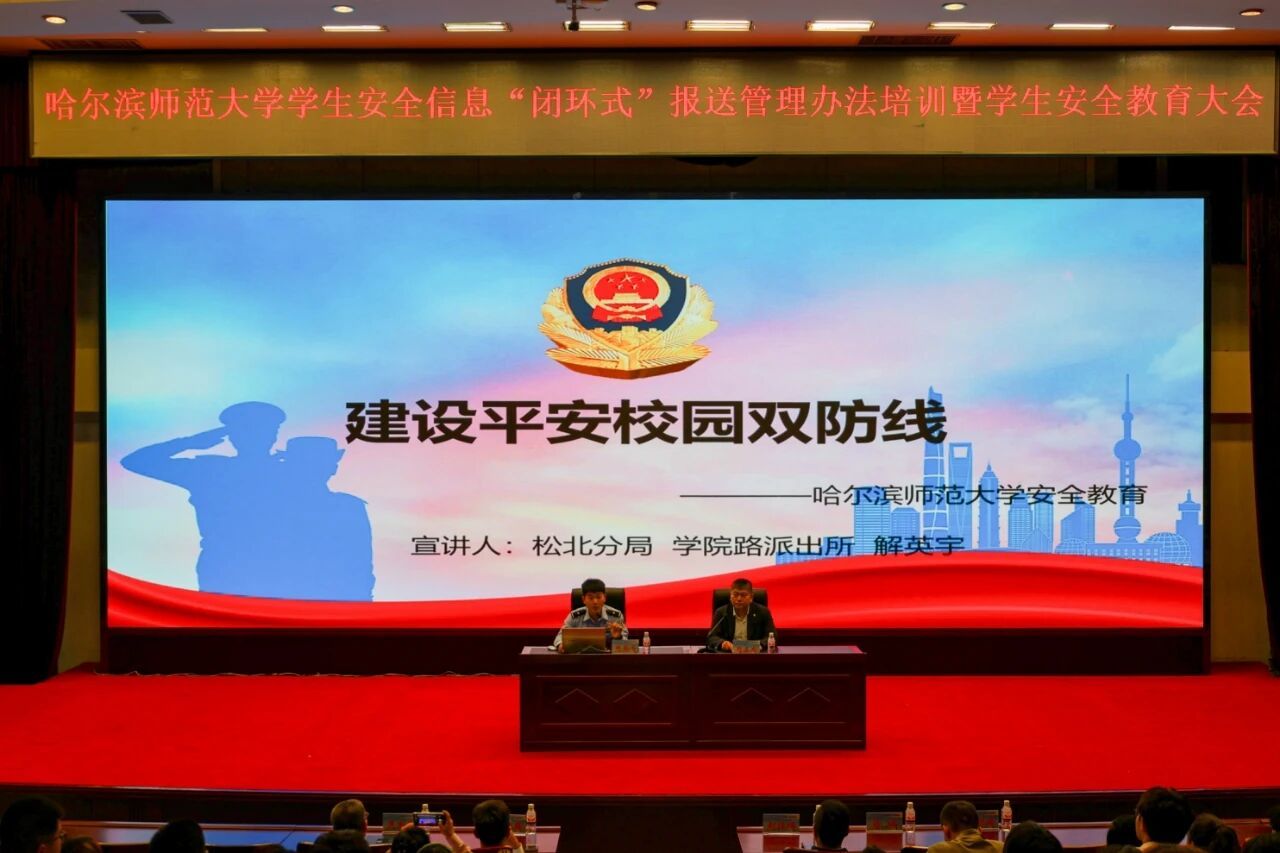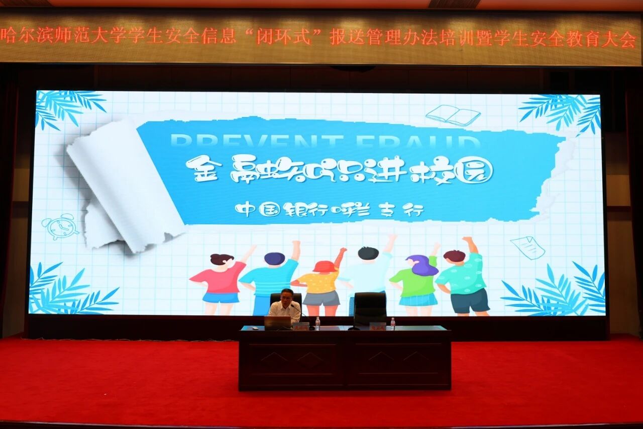 松北公安分局学院路派出所民警解英宇,松北区消防救援大队宣讲员刘佳楠,中国银行哈尔滨呼兰支行副行长张博强,中国银行工程大学支行行长范成波,学生处、保卫处等相关部门负责同志出席会议,各学院学工办主任、2025级辅导员及学生安全信息员代表参加会议,会议由学生工作部(学生处、武装部)副部(处)长钱正龙主持。