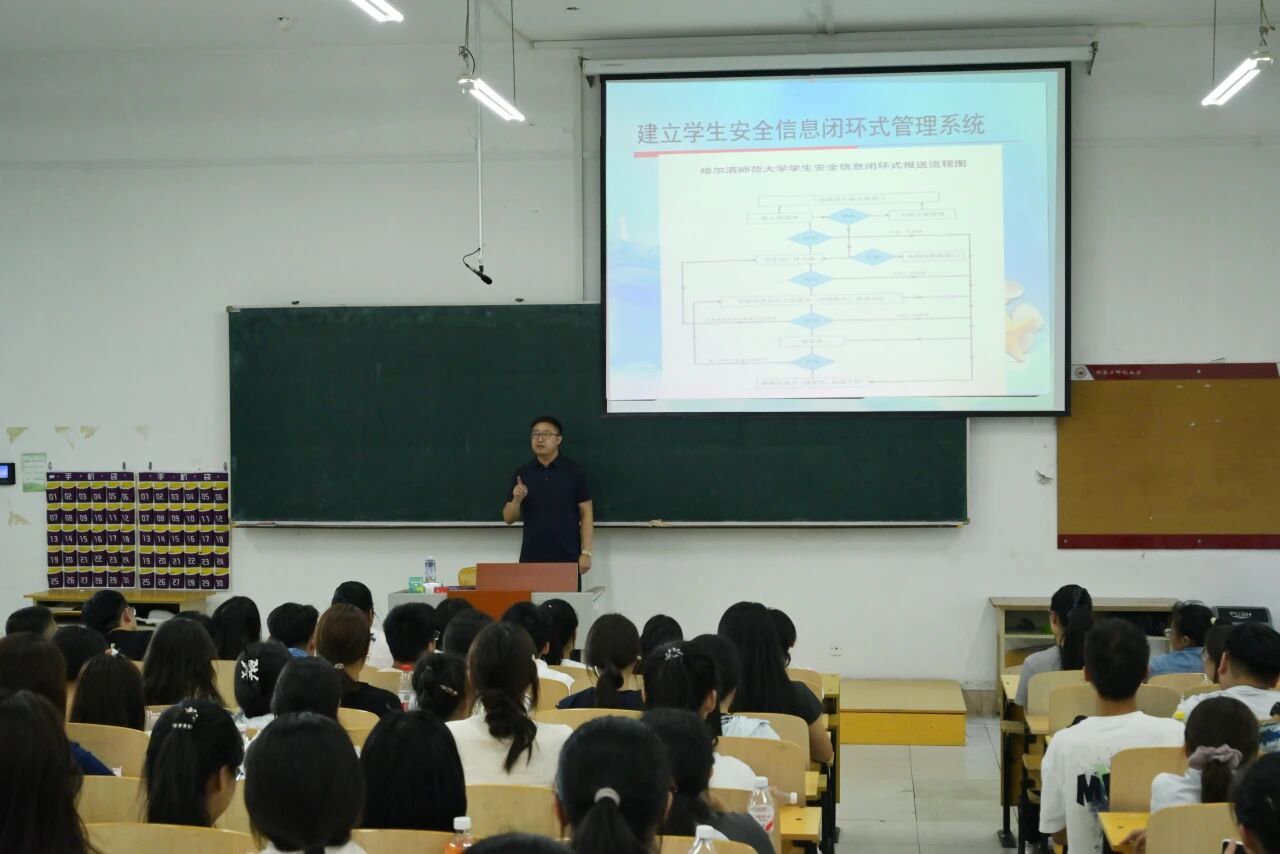 学生处学生管理科科长徐炀详细解读闭环式报送管理办法及学生安全信息员工作内容,开展校园安全信息管理培训。