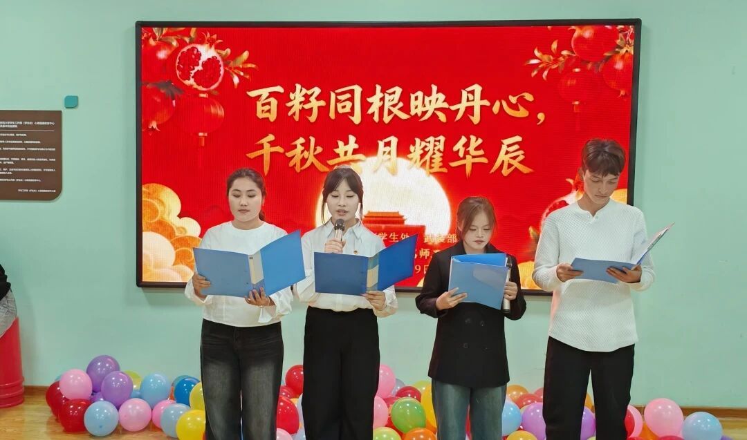 9月29日,学校举办“百籽同根映丹心,千秋共月耀华辰”民族团结主题联欢会。活动现场,师生围坐品尝中秋月饼、共同观赏文艺节目、互动开展趣味游戏,现场气氛热烈融洽。联欢会最后,各民族学生共同朗诵《何以华夏,何以中国》,以激昂的语调和真挚的情感表达了各民族青年对祖国母亲的热爱,也让师生的民族自豪感与向心力愈发浓厚。