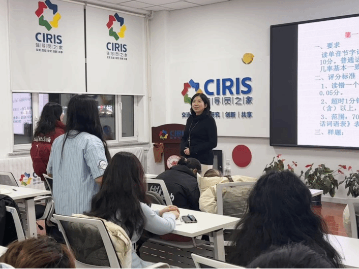 两位老师以深厚的语言教学积淀与国家级测试员的专业洞察,构建系统化授课体系。为精准破解发音痛点,殷红老师靶向设计单音节字词校准、多音节词语连读、生僻字精准认读等专项训练模块,以互动演练、即时反馈的沉浸式教学模式激活课堂活力,逐一对同学们的普通话发音进行溯源式矫正。景岩老师则带领同学们对作品朗读、命题说话等核心题型形成体系化认知,提升同学们语言表达的规范性和自信心,现场研学氛围浓厚热烈。在学习过程中,同学们不仅深化了对国家通用语言文字的系统认知,更在沉浸式体验中深刻体悟到其作为文化传承纽带、民族凝聚根基的深远意义,进一步增强了大家学好、用好普通话的思想自觉与行动自觉。