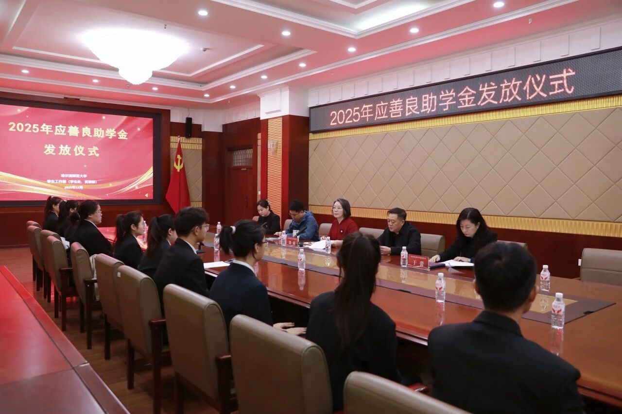 哈尔滨师范大学2025年应善良助学金发放仪式12月2日上午在江北校区举行。校党委副书记、工会主席郭砾出席仪式并讲话,学生工作部(学生处、武装部)部(处)长王彦庆主持仪式。