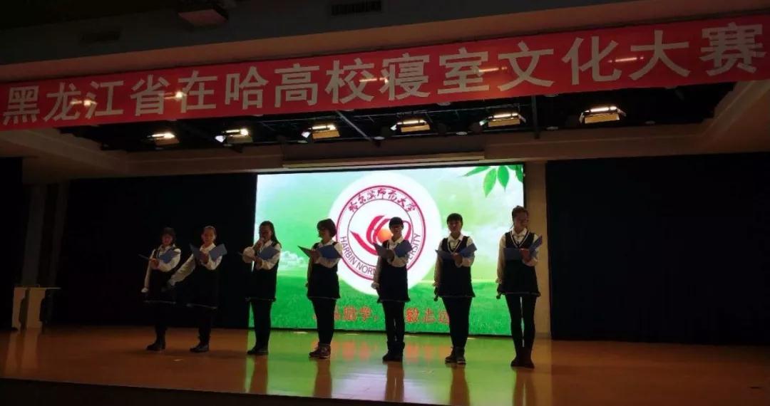 我校参赛寝室作为全校寝室的代表,在赛前做了充分的准备。在赛场上,淋漓尽致地展现出了哈尔滨师范大学寝室文化的丰富多彩,寝室氛围的温馨和暖,彰显了师大青年的精神风貌与青春风采,赢得了热烈的掌声,获得了评委老师的一致好评,给各高校参赛者留下了深刻印象。经过激烈角逐,我校十四公寓B栋601室获得“十佳寝室”荣誉称号,十一公寓B栋537室荣获“优胜奖”荣誉称号。