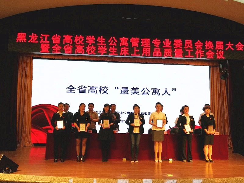 2018年5月25日上午,黑龙江省高校学生公寓管理专业委员会换届大会暨全省高校学生床上用品质量工作会议在东北农业大学图书馆一楼报告厅召开,全省80多所高校主管学生公寓工作的处长(经理)、公寓管理中心主任(科长)参加会议。我校学生工作部副部长李鹏作、宿舍管理中心主任张宏伟、学生公寓管理员艾玉秋参加此次会议。