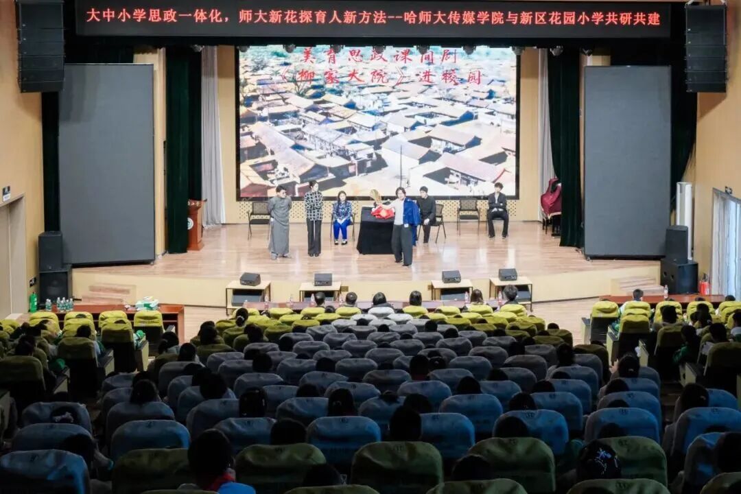 11月4日,哈尔滨师范大学“E海扬帆”美育辅导员名师工作室携手传媒学院表演系师生,将经典话剧《柳家大院》以课间短剧的形式带进哈尔滨新区花园小学校,成功举办了一场别开生面的美育展演活动。此次活动不仅是艺术作品的精彩呈现,更是大中小学思政教育一体化建设的一次生动实践。