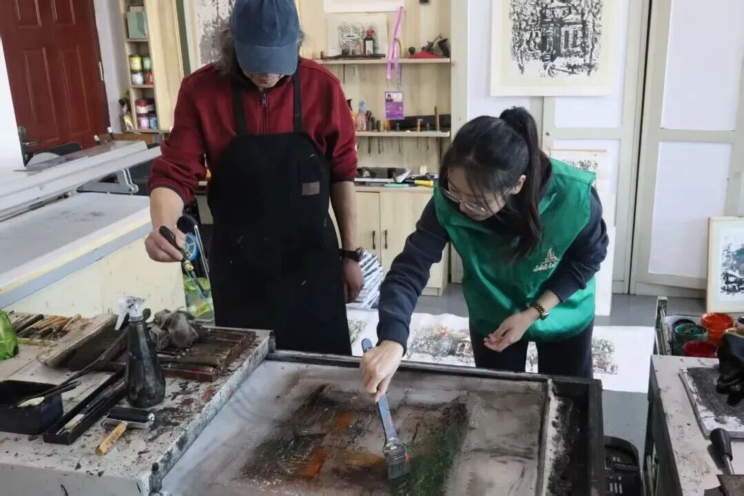 为深入推动非物质文化遗产在青年群体中的传承与创新,让青年近距离感受传统工艺的匠心魅力,11月7日哈尔滨师范大学“为师”辅导员团队前往冰版画创始人、“哈尔滨大工匠”朱晓东老师工作室,开展了“冰雪韵·刀木情”冰版画非遗实践活动。