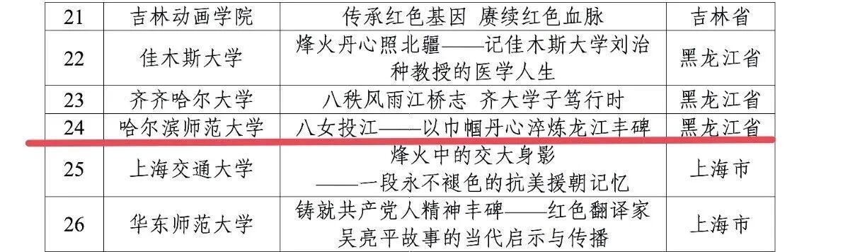 (耿长志/文)近日,教育部办公厅公布了2025年高校“礼敬中华优秀传统文化”宣传教育活动“烽火记忆”高校红色故事遴选结果。我校学生工作部(学生处、武装部)辅导员队伍建设科副科长梅瑞琪主讲的红色故事作品《八女投江——以巾帼丹心淬炼龙江丰碑》,在全国众多参评作品中脱颖而出,成功入选国家级优秀作品名单!