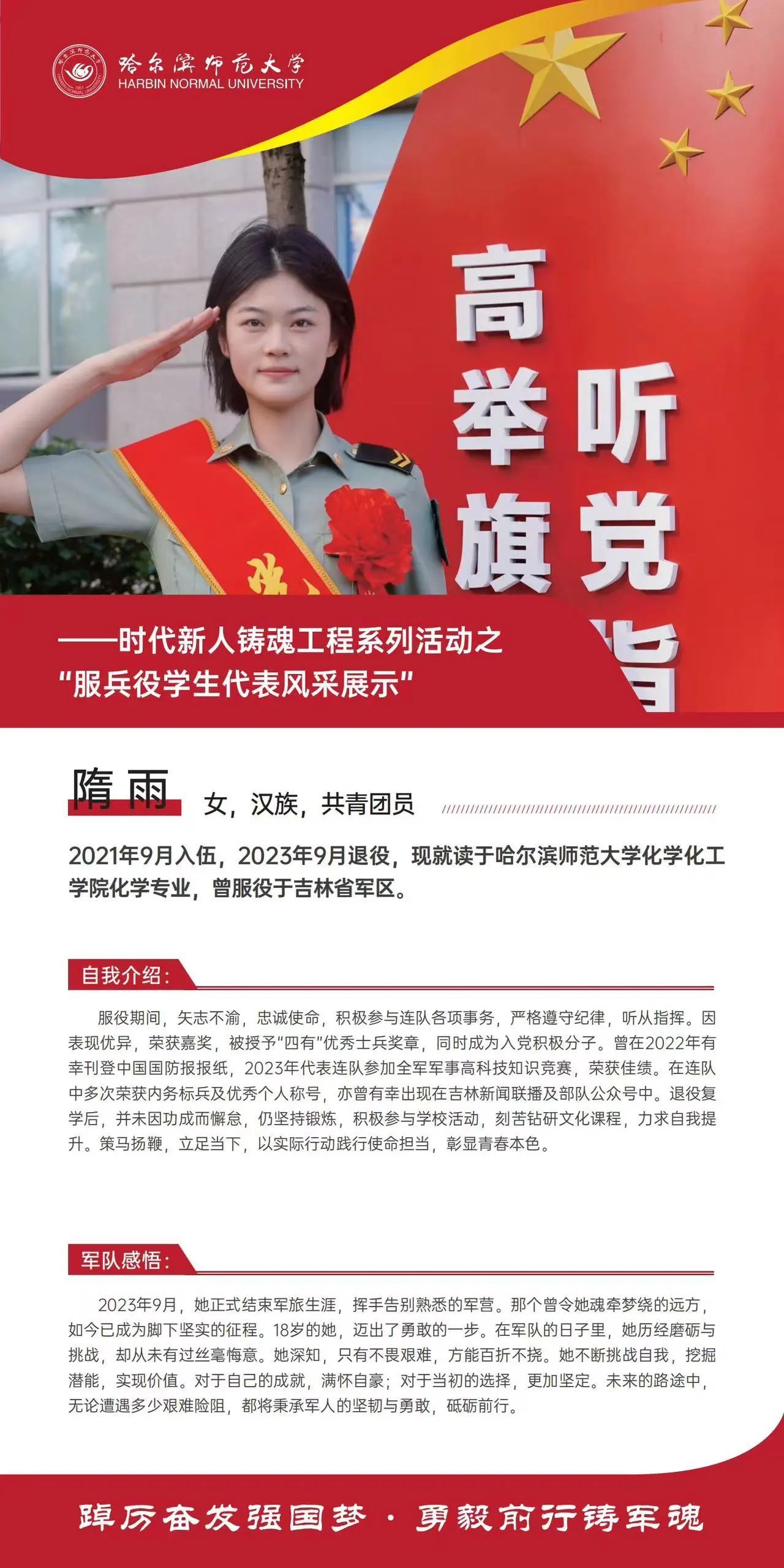 在这里,我们筛选展示出28名优秀退役大学生士兵。他们是携笔从戎的哈师大学子,他们是保家卫国的忠诚卫士,他们更是铁血铮铮、青春无悔的新时代好青年。