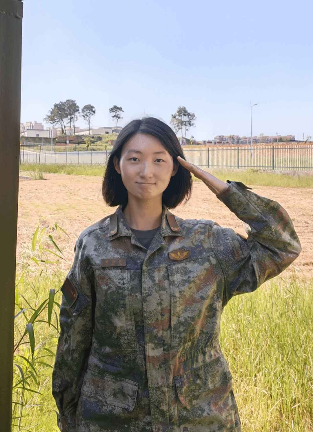 2023年秋季入伍,在新训时期刻苦训练,在右跟骨骨折的情况下,仍坚持完成全部结业考核任务,在射击考核中,获得了全学兵营队女兵第一的成绩,下连时,选至旅队荣誉连队,成为战区陆军总机的一名话务员,担任连队团支部宣传委员,坚守值勤岗位, 两年内参加“边境封控—济南”、“第十批马里维和官兵回国”、“两会”期间等重要通信保障任务,同时连队也是“阳光带兵法”的发源地,连队24年被中央军委政治工作部联合表彰为“全军信息通信战备先进单位”,多次参加旅队及军地联谊等重要演出任务,获2025年秋季士兵战备训练“嘉奖”。